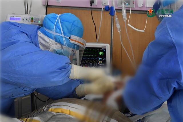 医护人员密切观测患者生命体征。解放军报记者 王传顺 摄