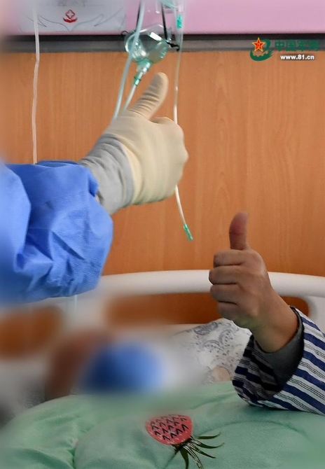互相鼓励点赞,是在重症室看到最多的场景。解放军报记者 王传顺 摄