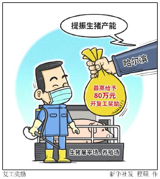新华社哈尔滨3月28日电 记者强勇 记者从哈尔滨市政府了解到,为提振疫情影响下的生猪产能,今年哈尔滨市将完成360万头生猪养殖任务,并对日均屠宰量500头以上的生猪定点屠宰厂给予最高80万元一次性开复工奖励。