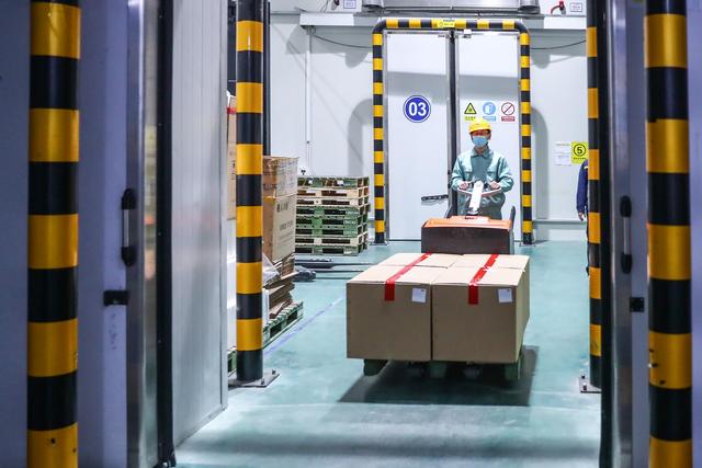 新华社照片,北京,2020年3月27日 北京:全面有序开展预防接种工作 工作人员在赛诺菲巴斯德北京物流中心搬运即将发货的疫苗产品(3月26日摄)。 近日,根据国家卫健委办公厅印发的《关于统筹做好新冠肺炎疫情防控全面有序开展预防接种工作的通知》,北京市全面有序开展预防接种工作,疫苗生产相关企业也全面复工复产,保证疫苗类产品供应。 新华社记者 张玉薇 摄