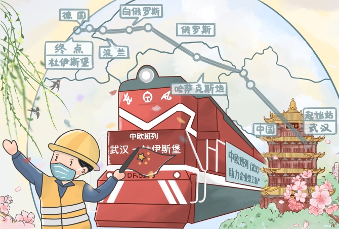 作为共建“一带一路”重要项目,中欧班列已成为世界运输体系的重要组成部分。据媒体报道,3月28日上午,搭载支援欧洲医用无纺布、医用桌布等总重166.4吨防疫物资的X8015/6次中欧班列从武汉中心站始发,预计15天后抵达德国杜伊斯堡。这是自疫情防控以来,从武汉开出的首趟中欧班列,标志着武汉中欧班列恢复常态化运行,对保障全球物流通道畅通、凝聚全球抗疫最大合力、彰显负责任大国的担当起着至关重要作用。