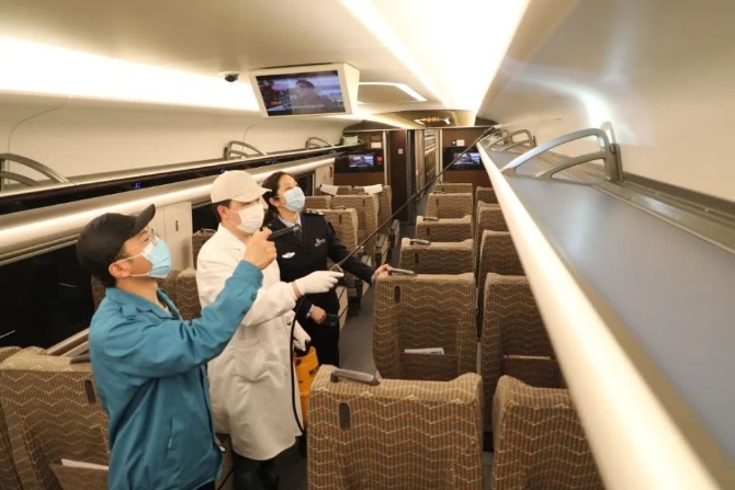 为全面做好高铁动车组开行的准备,武汉动车段积极配合防疫部门开展动车组预防性消毒工作,对全部动车组滤网、滤芯进行全面清洗更换,并做好动车组吸污、上水、滤网更换及清洁等工作。