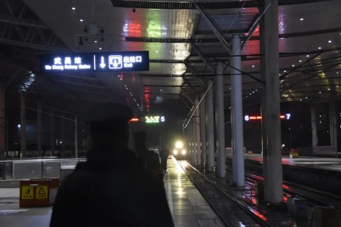 零点24分,西安发往广州的K81次列车缓缓驶进武昌火车站第五站台,这是武汉市17个铁路客站恢复办理到达业务首日的首趟抵达列车。