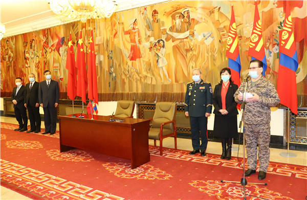 中国驻蒙古国大使柴文睿、使馆公使衔参赞杨庆东、经济商务参赞宋学军,蒙古国副总理、国家紧急状况委员会主席恩赫图布辛、卫生部长萨仁格日勒、副总理办公室主任赛音娜、国家紧急情况委员会代理秘书长阿鲁恩布彦、外交部邻国局副局长图雅其其格等中蒙官员出席。