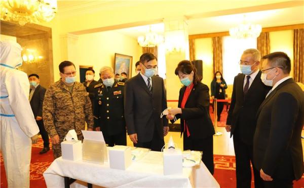中国政府援助蒙古国政府第一批抗疫物资交接仪式28日在蒙古国首都乌兰巴托国家宫举行。此次援蒙抗疫物资包括5016份核酸检测试剂、5000只N95医用防护口罩、5000只医用外科口罩、1000件医用一次性防护服。
