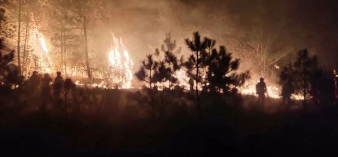 20时00分,丽江市森林消防支队第一梯队135名指战员抵达火场。经火场联合指挥部研究决定,杨俊雄副支队长带75名指战员,负责火场北线,配属地方干部群众、地方专业扑火队270人。张勇主任带42名指战员向火场东北线接近,配属地方干部群众、地方专业扑火队共150人。现在正徒步接近火场。