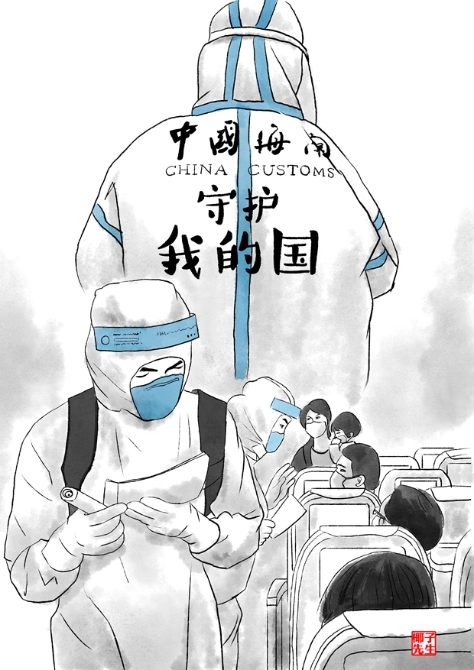 向这些守护国门的“战疫者”致敬!请主动配合他们的工作,如实填报健康申明卡、主动配合体温监测和医学巡查等工作,共同筑起“外防输入、内防反弹”的坚固防线。(文:徐可 手绘:赵凯)