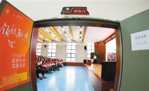 ▲鼠年春节前夕,云南省会泽县东陆高中,2019年考上北京大学的贫困户学子李青(右)在给学弟学妹讲自己拼搏进取的经历。会泽县大力发展教育,助力广大贫困家庭孩子走出大山,靠知识改变命运。