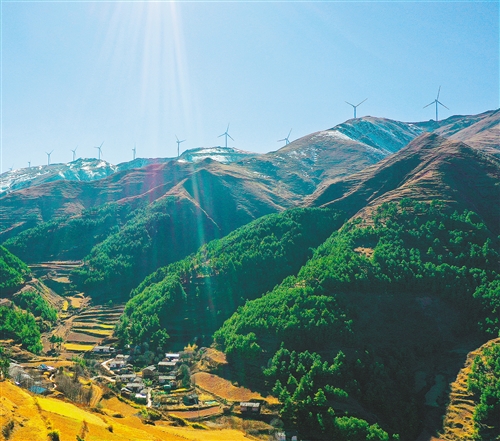 ▲会泽县大海乡风力发电成为山区亮丽风景线。该县大力发展风电产业。