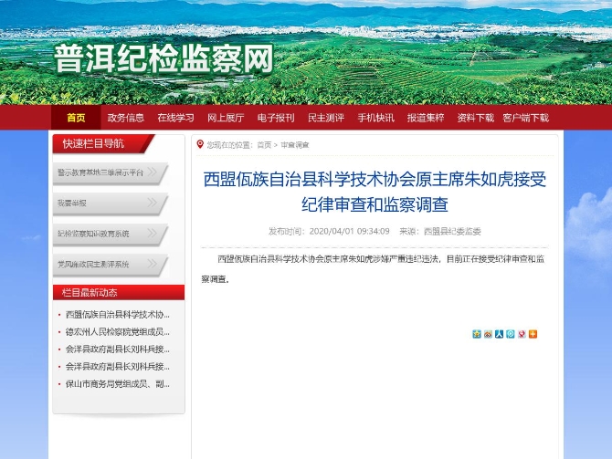 西盟佤族自治县科学技术协会原主席朱如虎被查