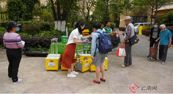 4月2日,昆明市金通苑小区成为了首批投放便携可折叠的“共享菜篮”示范点之一。小区居民只需在示范点进行人员信息登记以后,便可以免费领用共享菜篮。
