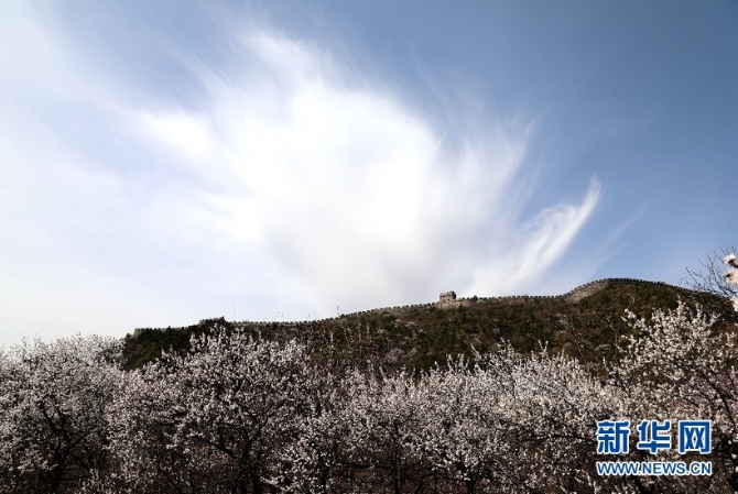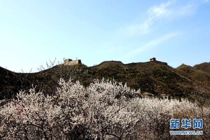 山花烂漫居庸雄姿。新华网王晗/摄