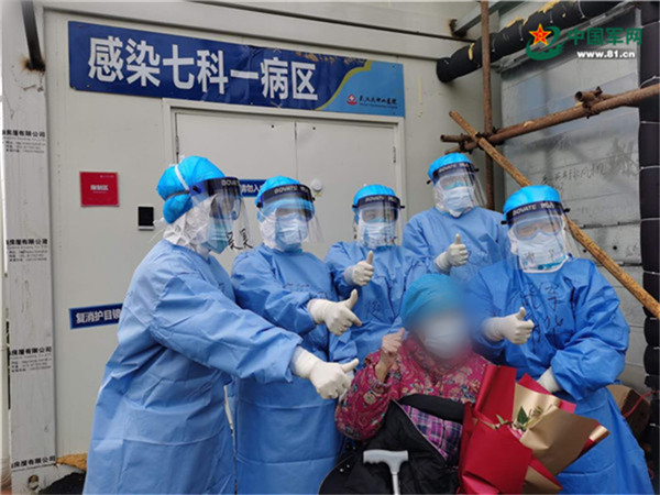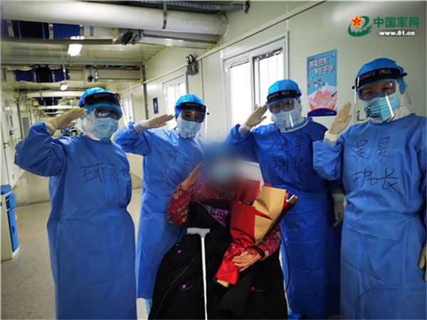 丁奶奶没想到自己还能再活着走出医院,坐在轮椅上,她用颤巍巍的右手向前来送行的医务人员敬上庄重的军礼。