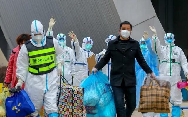 图为武汉客厅方舱医院医务人员送别出院患者。中新社 记者张畅/摄