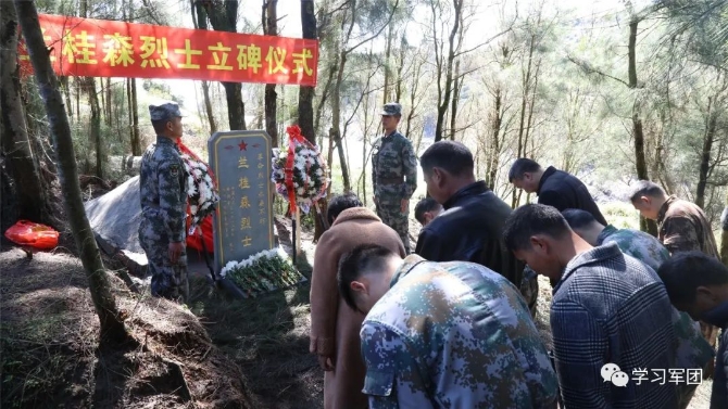 今年初,在旅队的帮助下,兰桂森烈士的亲人终于来到岛上祭奠,了却了一家人牵挂半个多世纪的心愿。清明节前夕,东部战区陆军某海防旅组织部分官兵和烈士家属登上东台山岛,举行了庄严的立碑仪式,墓碑上,无名烈士终于有了名字。