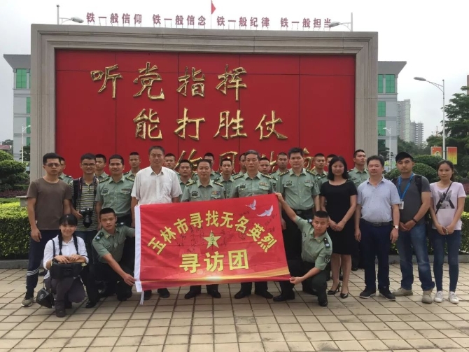 ▲寻访团准备出征前,在玉林军分区留下合影。(资料图)