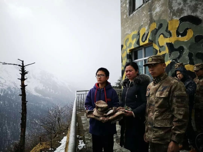 “妈妈,我想去高原找爸爸,我觉得他还守在那里。”去年清明前夕,周忠燕母子踏上雪域祭奠的追思之旅。登上海拔4088米的拉则拉哨所,胡博文爬上哨楼,对着雪山呐喊:“爸爸,我来看你了。”
