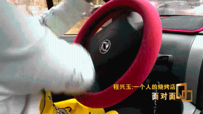 程兴玉:有一些客人把门推开,强行进来。我是老顾客,你让我进来吃或者怎么样,这种情况就只能得罪他了,你以后不在我的顾客群里都行。因为什么?你虽然想吃,但我在工作的同时也要保证我的安全。我一旦上炉子一次性手套一晚上最少要用50双,我每上一次烤炉我就把手套扔掉,每烤一个单关掉炉子都要换手套。第一干净,第二安全。我打包递给快递小哥,他跟我会有一两米的接触,手一定要保持干净。一次性手套很薄,有时候脱手套会破了,质量不好有时候时候火一烤熔了,你必须得换。