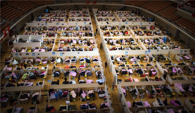 2月17日拍摄的武汉体育中心方舱医院。新华社记者 肖艺九 摄