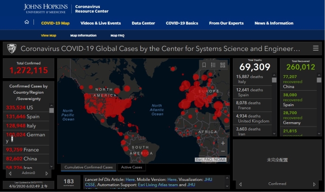 这是来自美国约翰斯·霍普金斯大学对全球新冠肺炎疫情实施检测的统计图表。而图表的创作者是这所大学两名来自中国的博士生董恩盛和杜鸿儒,他们都是约翰斯·霍普金斯大学土木与系统工程系博士一年级学生。