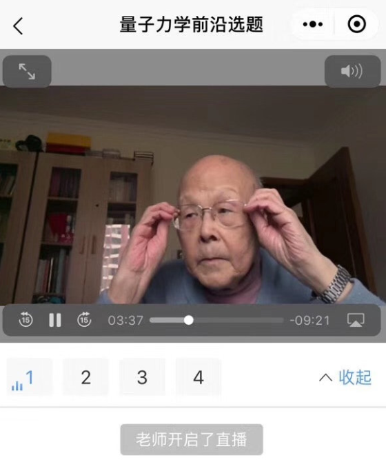 在这支授课队伍中,不得不提的还有那些“90后”的老教授。在精彩网课“主播”中,清华大学物理系教授张礼就是其中一位。这位95岁的老教授是清华园里教龄最长的教师,已经从教71年。2月20日,张礼与他的助教胡嘉仲联合开设的“量子力学前沿选题”正式登上在线课堂。