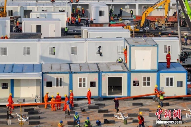 资料图:1月30日,火神山医院施工现场,各项施工项目在全速推进中。 中新社记者 张畅 摄