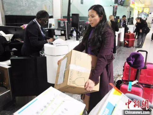资料图:2月14日晚,何彩霞搭乘航班回国,奔赴中国抗击新冠肺炎疫情一线。张平 摄