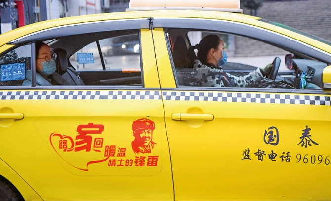 在重庆,一支名为“雷锋的士”的出租车志愿服务队成了疫情期间的网红车队。超过600名“雷锋的士”志愿者组成10余个小分队,“点对点”服务1000余名抗疫一线医护人员的家属,为他们采购生活物资、看病就医等必要出行提供义务接送服务。图为2020年2月26日,“雷锋的士”志愿者江智琼送重庆市第九人民医院护士上班。 新华社记者 王全超/摄