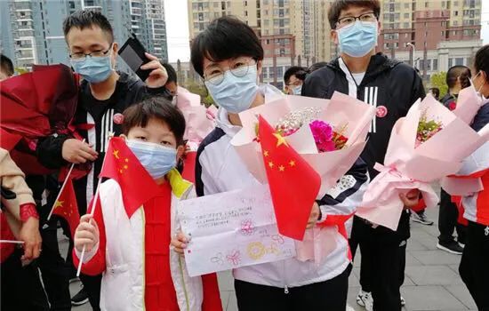 车队出发去机场,群众自发送行的队伍让人动容,马路两旁、居民楼上有无数欢送横幅: “春风十里,只为送你”“谢谢您为我们负重前行,谢谢您曾为黄冈拼过命”“我未谋您面,但是记得您”……黄冈市民拿出了最高的礼节来欢送我们,人群中还有咿呀学语的孩童,由父亲举到头顶,对我们说: “齐鲁大爱,铭记终生,感谢山东,感恩有你。 ”还有多才多艺的小学生画给我们的画,告诉我们,要以我们为榜样,长大后也要做我们这样的人,把正能量带给黄冈少年。 我觉得两个月的困难、艰苦,意义非凡。