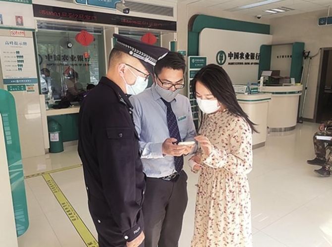 过了几分钟,报警人又接到银行短信提示,显示自己银行卡内的钱又分两笔转回了40万元,还有10余万元没有转回来。此时,骗子不断打微信语音给报警人,要求报警人按他指令操作,并表示只有按他的指令操作,报警人剩余的10余万元钱才能再转回来。民警判明这是骗子的“套路”,于是告知报警人不要按骗子指令操作,并迅速驱车将报警人带至30多公里以外的昌宁农业银行柯街营业室进行咨询。