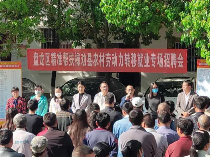 为落实国家、省、市“稳就业”工作各项决策部署,坚决打赢脱贫攻坚战,近年来,昆明市盘龙区按照“政府市场两手抓、供给需求两对接、区域内外两协同、线上线下两互动”的工作思路,切实“在供给端摸好底、在传输端接好线、在接收端找好位”,充分发挥主城区优质就业岗位等资源优势,进一步把精准帮扶禄劝县农村劳动力转移就业工作抓紧抓细抓实,实现有就业意愿的劳动力转移就业,已就业的稳定就业,带动贫困家庭持续增收。