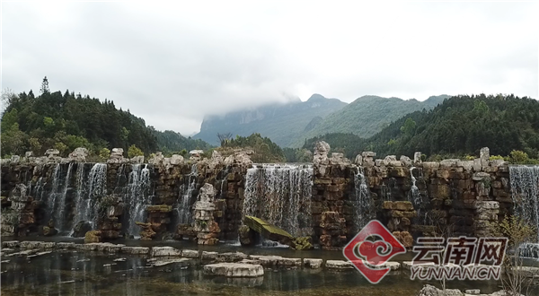 眼前,以腊门、江龙两条顺山而下的河水而营造的11阶叠水瀑布是水生态小镇的核心景观。纵观小镇版图,它所依托的绿色生态资源有着得天独厚的优势——规划范围内群峰叠翠,溪河纵横,旅游资源多样:凤凰谷是国内唯一生命文化主题公园;菌子山是中国古老马缨花杜鹃自然群落,最长的树龄达1400余年,同时也是云南最大的杜鹃花自然群落和云南最大的原生态露营地;南丹山雄奇险峻;龙庆乡黑尔村风情万种。