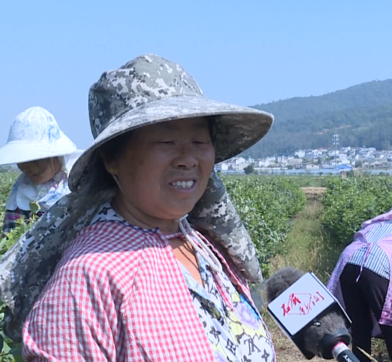 往年栽一次稻谷,栽一次油菜,租给他们种蓝莓一年每亩有2000元的地租,对我来说,别处也不会干什么,在蓝莓地里打工,一个月干得多的有2000元左右的工资,像我一个月有1500元至1600元。