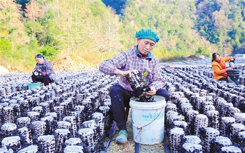 贵州省黔东南苗族侗族自治州榕江县两汪乡借助专项扶贫补助资金110万元,以公司+贫困户模式发展食用菌(黑木耳)产业,助贫困户经济增收。李长华摄(中经视觉)