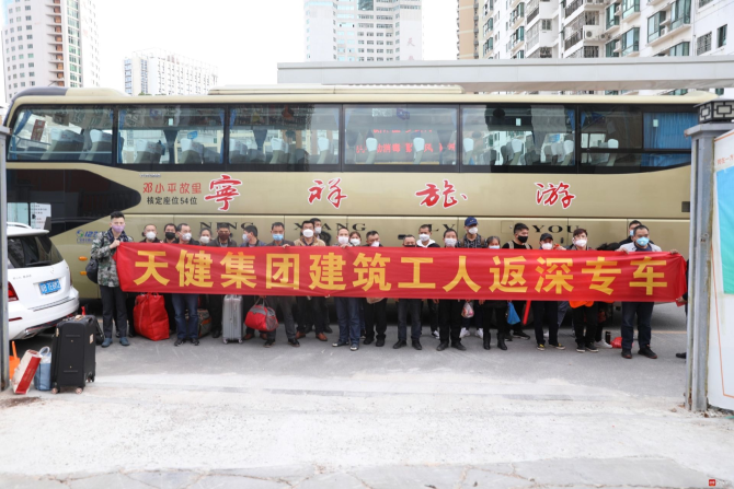 中建三局深圳分公司安排的“返岗直通车”,跨越1000多公里,前往贵州沿河以及云南文山、临沧等地集中接回返岗工人,直接从镇上免费送到工地,为深圳一批重大项目的顺利复工提供了人员保障。