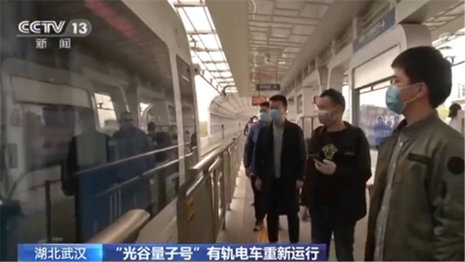 湖北武汉:“光谷量子号”有轨电车重新运行 秩序井然