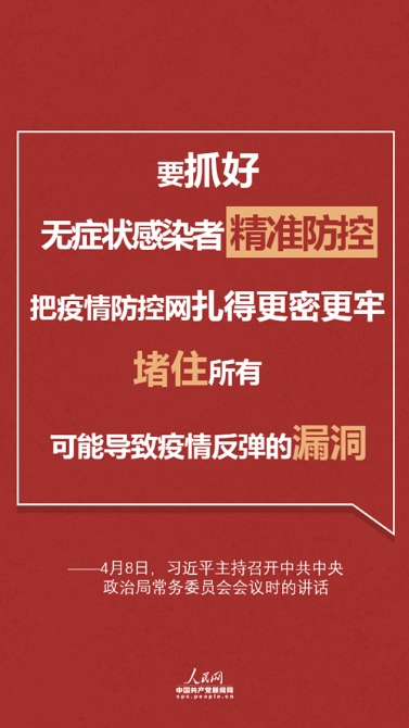 ● 各地要抓好无症状感染者精准防控,把疫情防控网扎得更密更牢,堵住所有可能导致疫情反弹的漏洞。