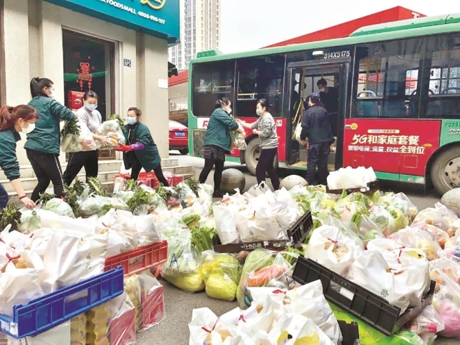 另一方面,武汉全市小区封闭管理后,商超生活物资配送压力陡然增大。于是,在原来已经储备“三个100台”、增配78台公交车运力的基础上,520台公交车再增援,精准对接165家商超网点、237家电商平台网点,实现中心城区全覆盖。截至4月3日,共组织车辆19030台,运行13463车次,运送生活物资367.7万件。邮政快递紧急设置的1557个无接触投递点全面服务社区居民。