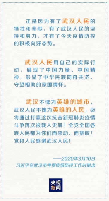 习近平总书记说:“在这次抗击疫情斗争中,武汉人民展现出了不怕牺牲的精神、勇于担当的精神、顾全大局的精神,还有甘于奉献的精神。这些精神都是中华民族的精神的重要体现。”