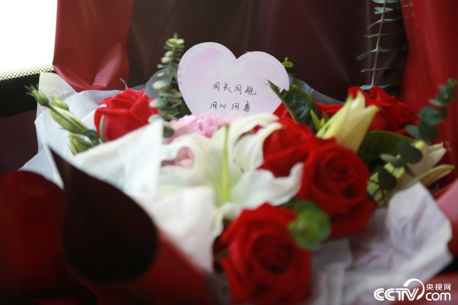 大巴车座位上早已放好迎接援鄂医务人员的鲜花。