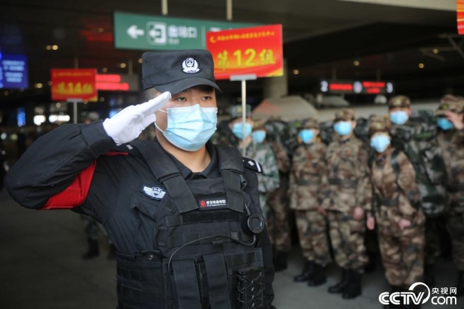 西安铁路公安局西安公安处民警用暖意文字和敬礼向援鄂医务人员表达敬意。