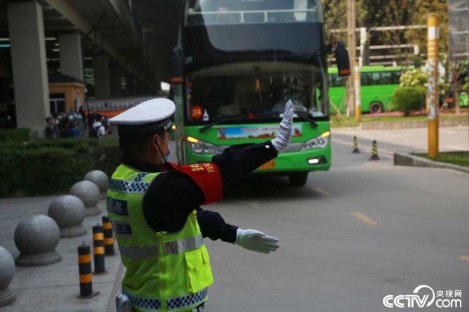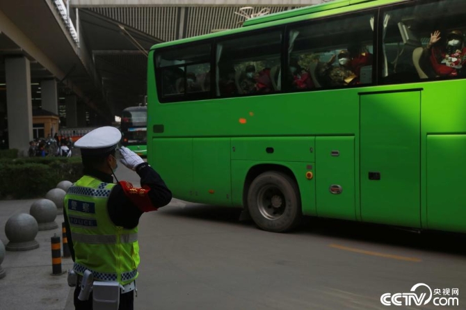 “绿色专用通道”沿途交警欢送援鄂医务人员。
