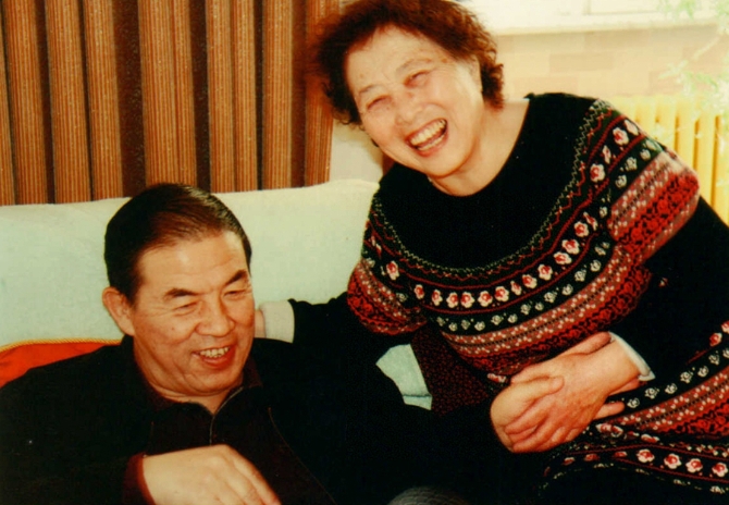 汪洋湖和老伴温淑琴在家中(资料照片)。新华社发