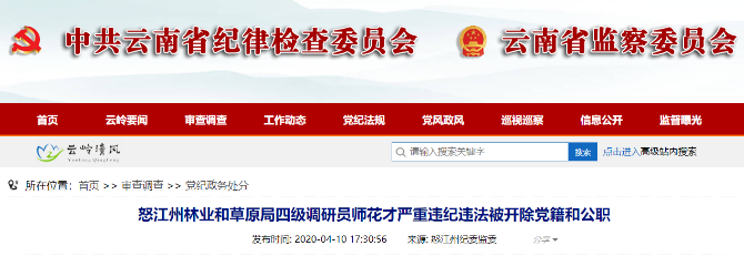 怒江州林业和草原局四级调研员师花才被双开