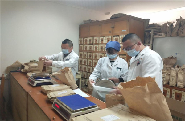 中药房药师在调剂预防中药(央广网发 北京小汤山定点医院供图)