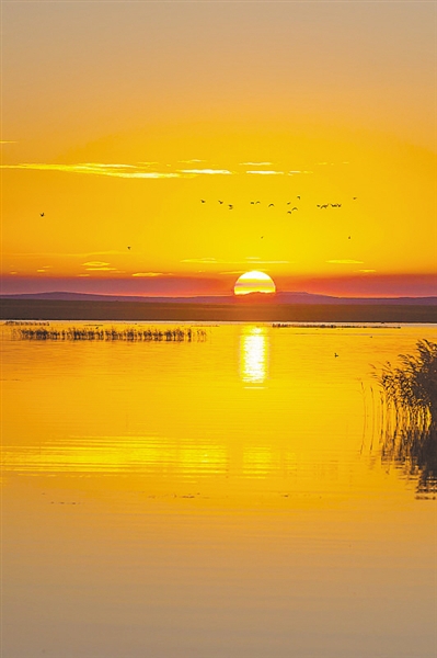 红色旭日与粉红月亮一样,都是大气发生瑞利散射的结果。