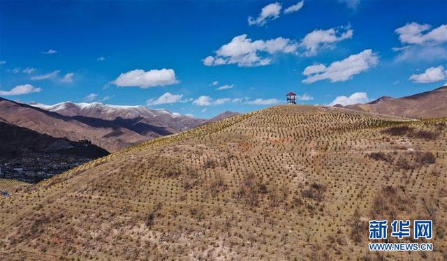这是4月11日拍摄的青海省玉树藏族自治州玉树市境内的树木(无人机照片)。 新华社记者 薛玉斌 摄
