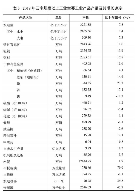 全年规模以上工业粗钢产量2154.68万吨,增长11.9%;钢材产量2323.31万吨,增长19.7%;十种有色金属产量405.08万吨,增长13.6%;水泥产量12844.85万吨,增长8.9%;卷烟产量699.29万箱,下降0.1%;成品糖产量238.70万吨,下降2.6%。
