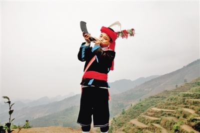 牛角号响彻群山,拉开了瑶族“耍歌堂”的序幕。梁厚祥摄