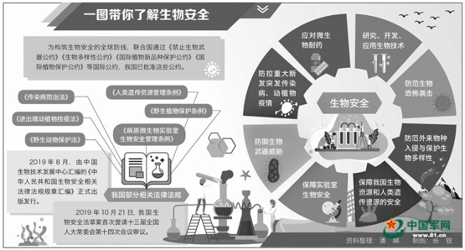 在总体国家安全框架中,生物安全既涉及外部安全又涉及内部安全,既有传统安全因素又有非传统安全因素,既关联自身安全又关联共同安全,且关乎人类命运共同体“普遍安全”的构建。我国是一个有着14亿人口的大国,生物安全与人民生命健康紧密相连,其重要性不言而喻。
